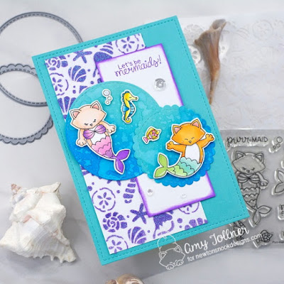 Hi everybody! This is an Inky Paws Challenge #150 - Sketch Challenge reminder post! You have until Friday, June 18th to get your entries in and have a chance to win a $20 store credit to Newton's Nook Designs online shop! I just love the mermaid tails on these kitties, and it gave me the perfect opportunity to use one of my favorite things - glitter! What would a mermaid tail be without it?