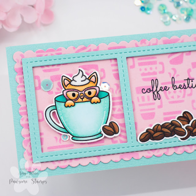 Hi everyone! I am up on the Pawsome Stamps blog today with this slimline card I created using the new Coffee Besties Stamp Set! I love this stamp set so much, and have more cards to share with you using this stamp set in future posts!